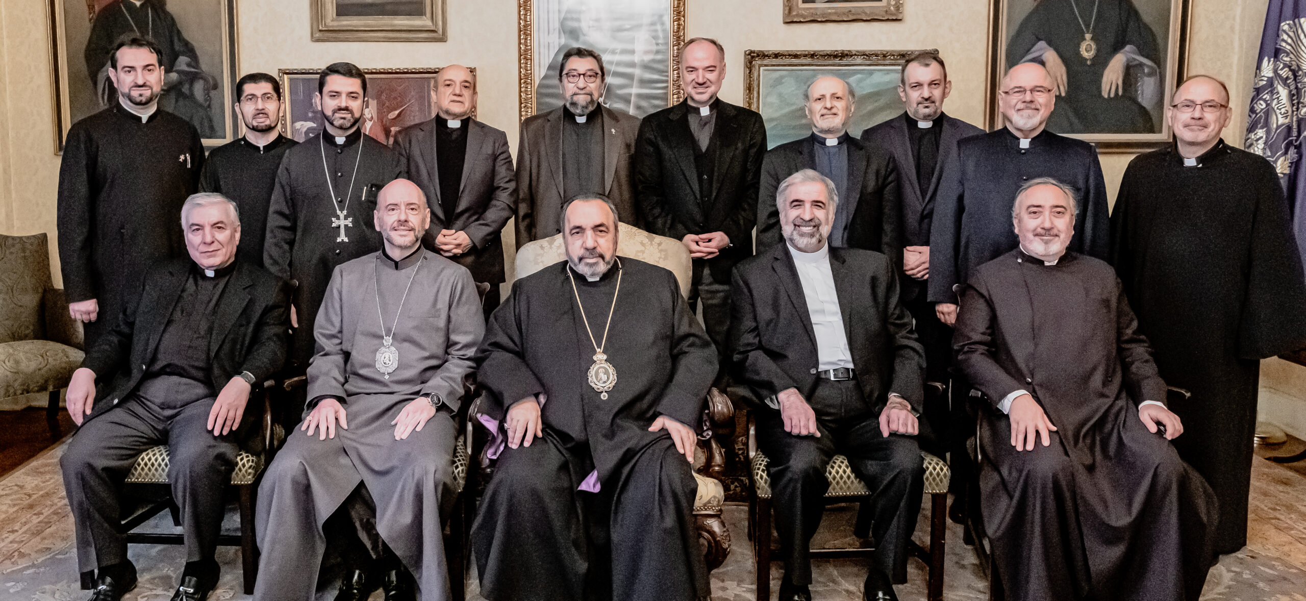 Diocesan Primate Bishop Daniel welcomed His Beatitude Archbishop Nourhan Manougian, the Armenian Patriarch of Jerusalem, to the Diocesan Center in New York on Wednesday, December 18, for a luncheon and meeting with Diocesan clergy.