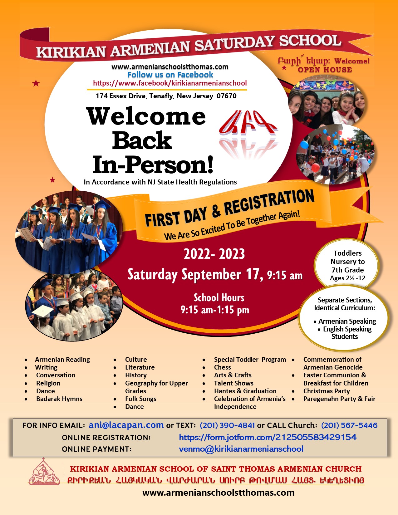 IN-PERSON EVENT: Tenafly (NJ) Kirikian Armenian School Opening Day