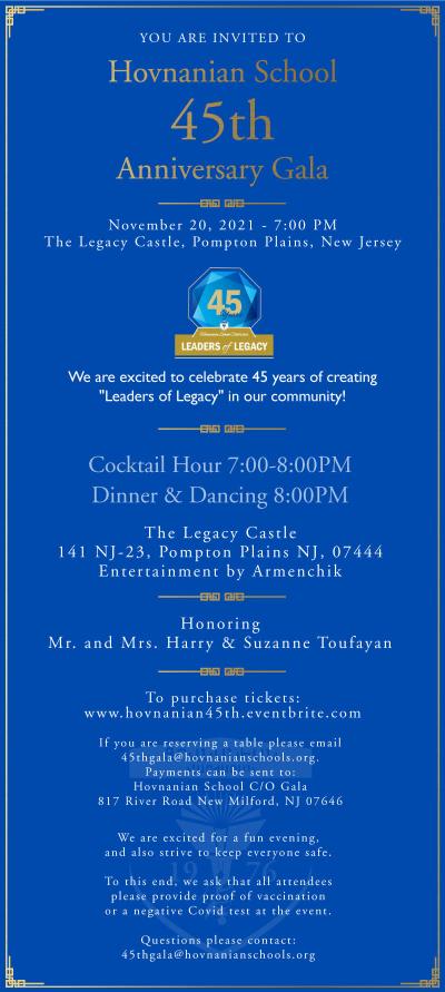 IN-PERSON EVENT: Hovnanian School 45th Anniv. Gala