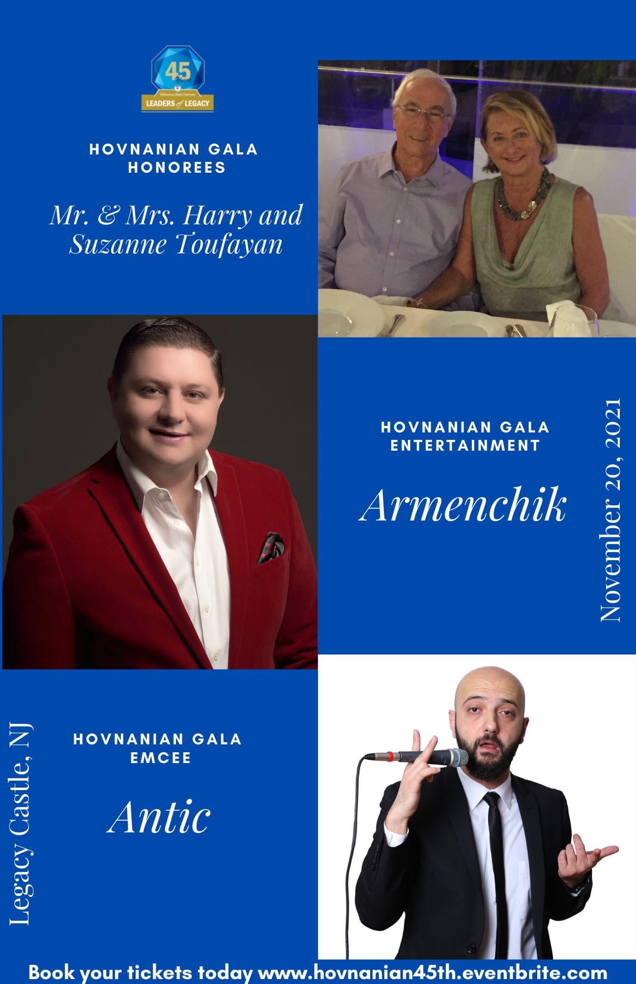 The Hovnanian School of New Milford, NJ, will celebrate its 45th anniversary on Saturday, Nov. 20, at 7 p.m., at The Legacy Castle (141 NJ-23, Pompton Plains, NJ). Cocktail hour, dinner, dancing. Honoring Mr. & Mrs. Harry & Suzanne Toufayan. Entertainment by Armenchik and Antic. Click on the links to view an invitation, view event details, and to reserve online (by Nov. 10).