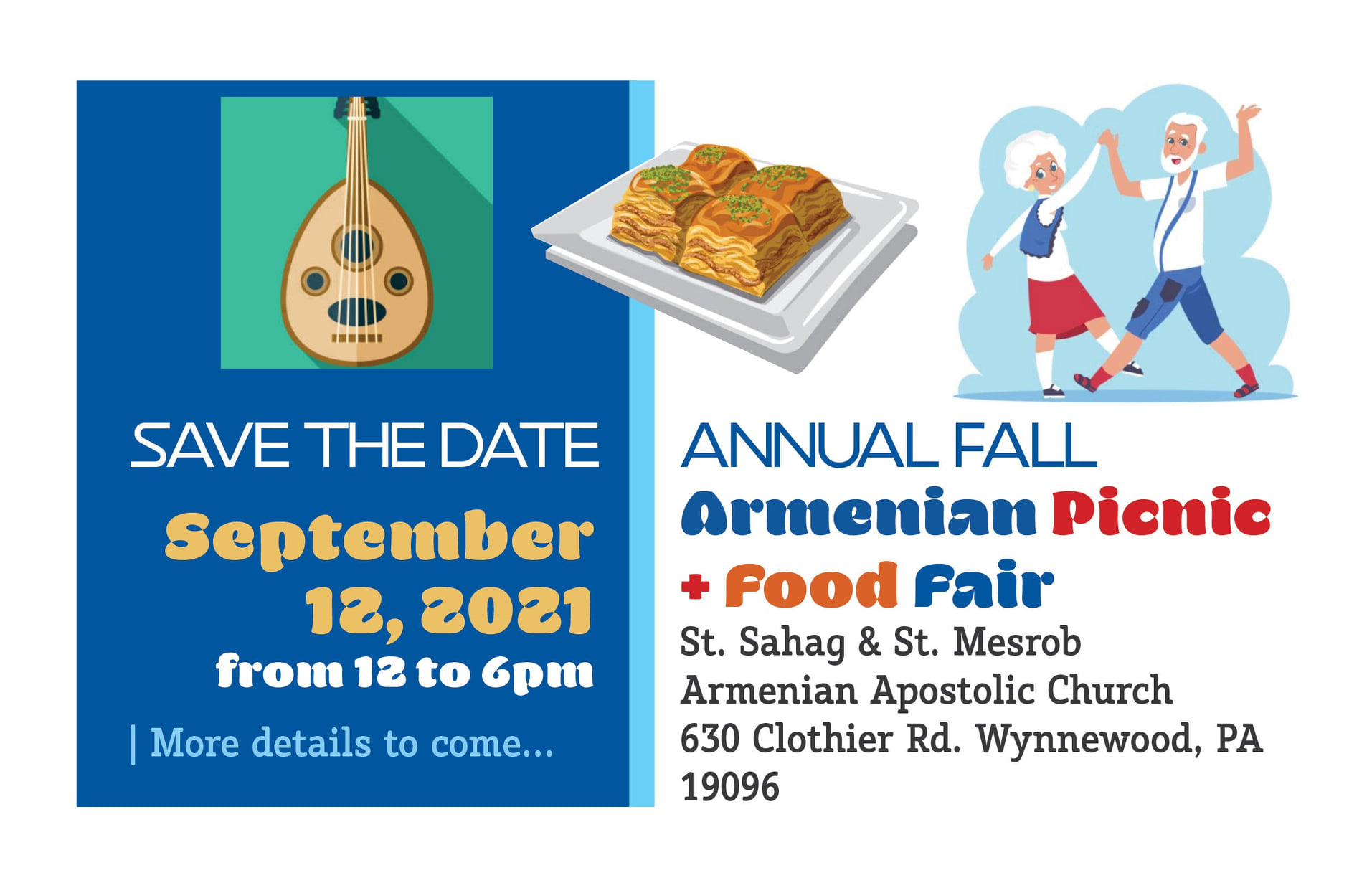 St. Sahag & St. Mesrob Church of Wynnewood, PA, will hold its annual picnic on Sunday, Sep. 12, from 12 noon to 6 p.m., on the church grounds (630 Clothier Rd., Wynnewood). Enjoy Armenian cuisine, live music, activities & fun for the children. For information call (610) 642-4212. To view a flyer, click here.