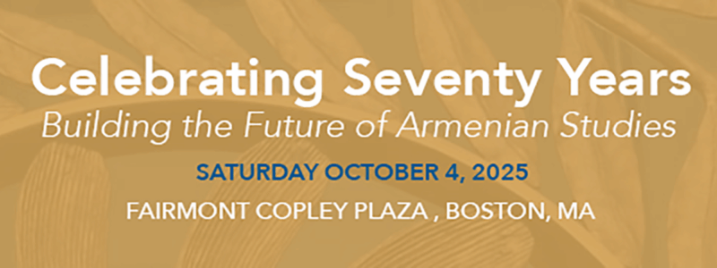 The National Association for Armenian Studies and Research (NAASR) will mark its 70th anniversary with a special gala in Boston, MA, on Saturday, Oct. 4, starting at 6 p.m., at the Fairmont Copley Plaza (138 St. James Ave., Boston). Honor NAASR’s enduring commitment to advancing Armenian Studies, in an evening of celebration, connection, and support for the future of scholarship, culture, and community. For information, including contact and sponsorship opportunities, and to view a flyer, click here.