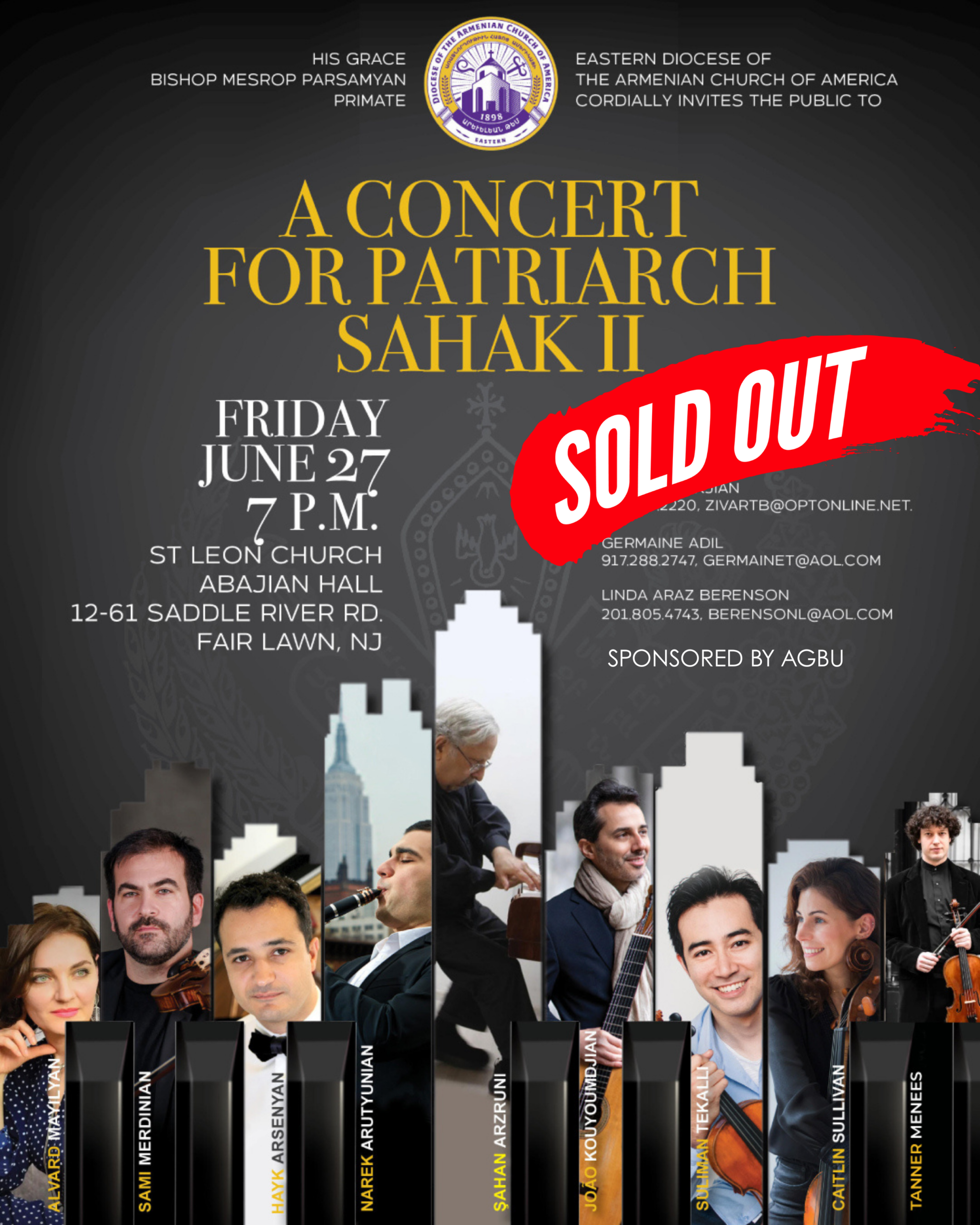 EVENT IS SOLD OUT / A Concert for Patriarch Sahak II (Fair Lawn, NJ)