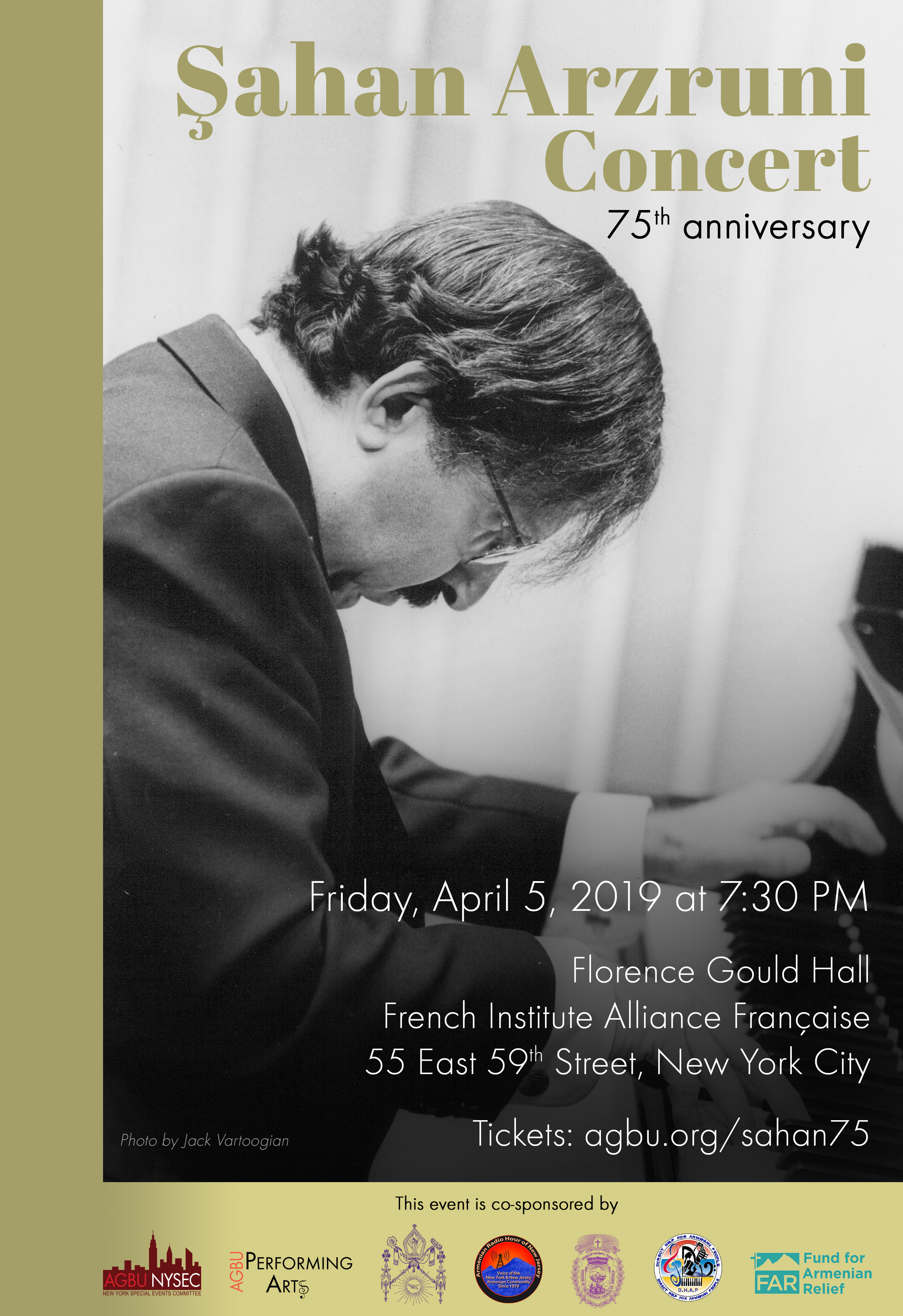 Master pianist Sahan Arzruni will perform a concert on Friday, Apr. 5, at 7:30 p.m., at Florence Gould Hall of the French Institute/Alliance Francaise (55 E. 59th St., New York). AGBU, the Eastern Diocese, and a host of organizations are sponsoring this tribute to Maestro Arzruni’s lifetime achievement as a concert artist. Click on the links to view a flyer with details, and to access the portal to purchase tickets online.