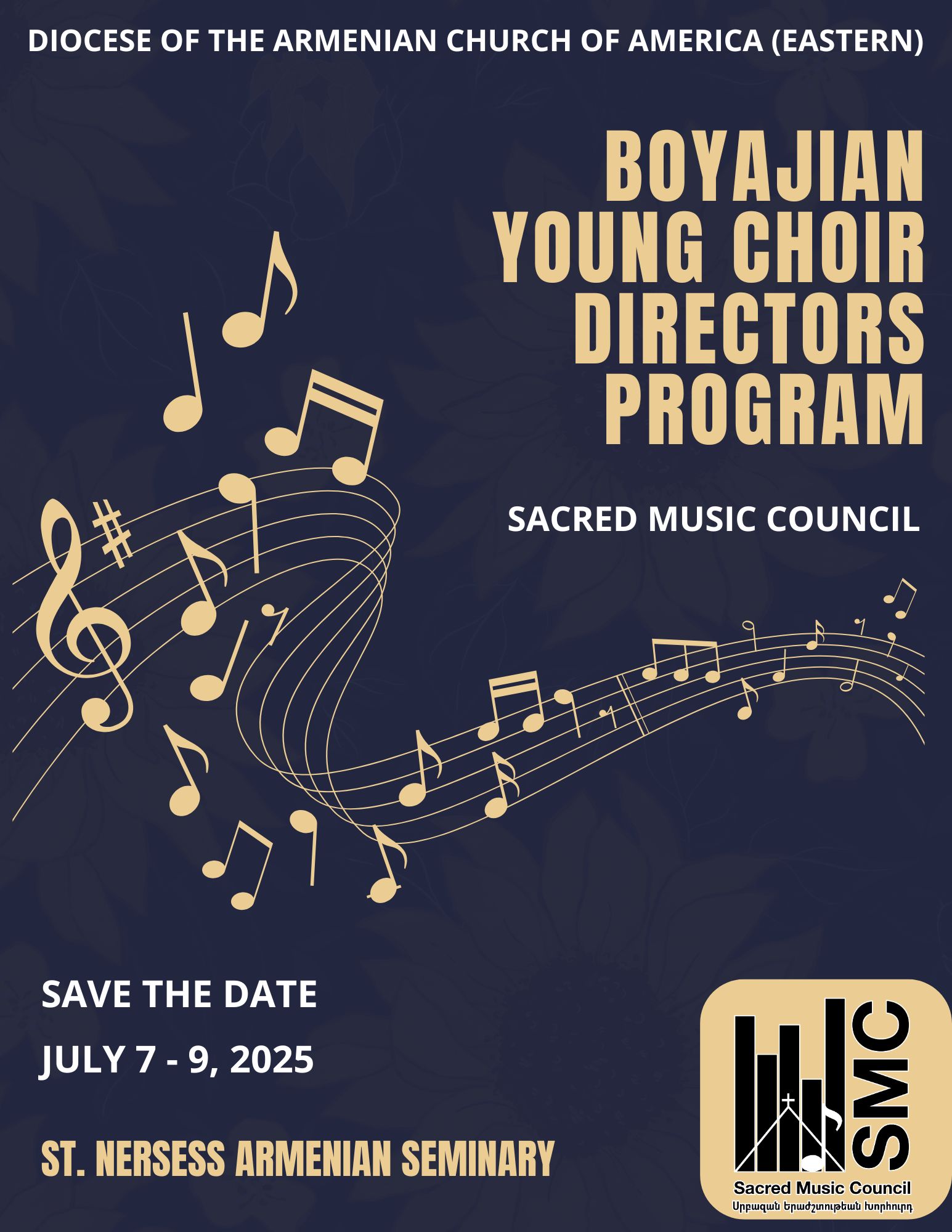 The Eastern Diocese’s Sacred Music Council will hold its 2025 “Boyajian Young Choir Directors Program” from Monday to Wednesday, July 7-9, on the campus of St. Nersess Seminary (486 Bedford Rd., Armonk, NY). Open to young people 13 years and over, active in parish choirs or church life, with basic music reading skills. This year’s program focuses on conducting techniques, sight-singing, and vocal training, with instruction from leading musicians from across the Diocese. Registration deadline is June 1. The Sacred Music Council will fully underwrite the cost of tuition and boarding (but not the travel expenses).