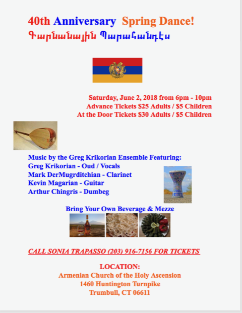 Holy Ascension Church of Trumbull, CT, will hold its 40th anniversary Spring Dance on Saturday, Jun. 2, 6-10 p.m., at the church facility (1460 Huntington Trnpk., Trumbull). Click here for a flyer with ticket and event information.