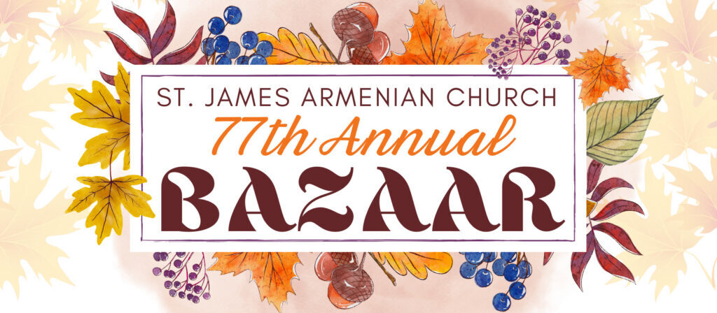 St. James Church, Watertown, MA, will hold its 77th annual Bazaar over two days: Friday, Oct. 18 (12-8 p.m.) and Saturday, Oct. 19 (11 a.m.-7 p.m.), at the church facility (465 Mt. Auburn St., Watertown). Enjoy Armenian food and pastries, raffle, silent auction, children’s activities, booths and local vendors. For information visit the parish website. To view a flyer, click here.