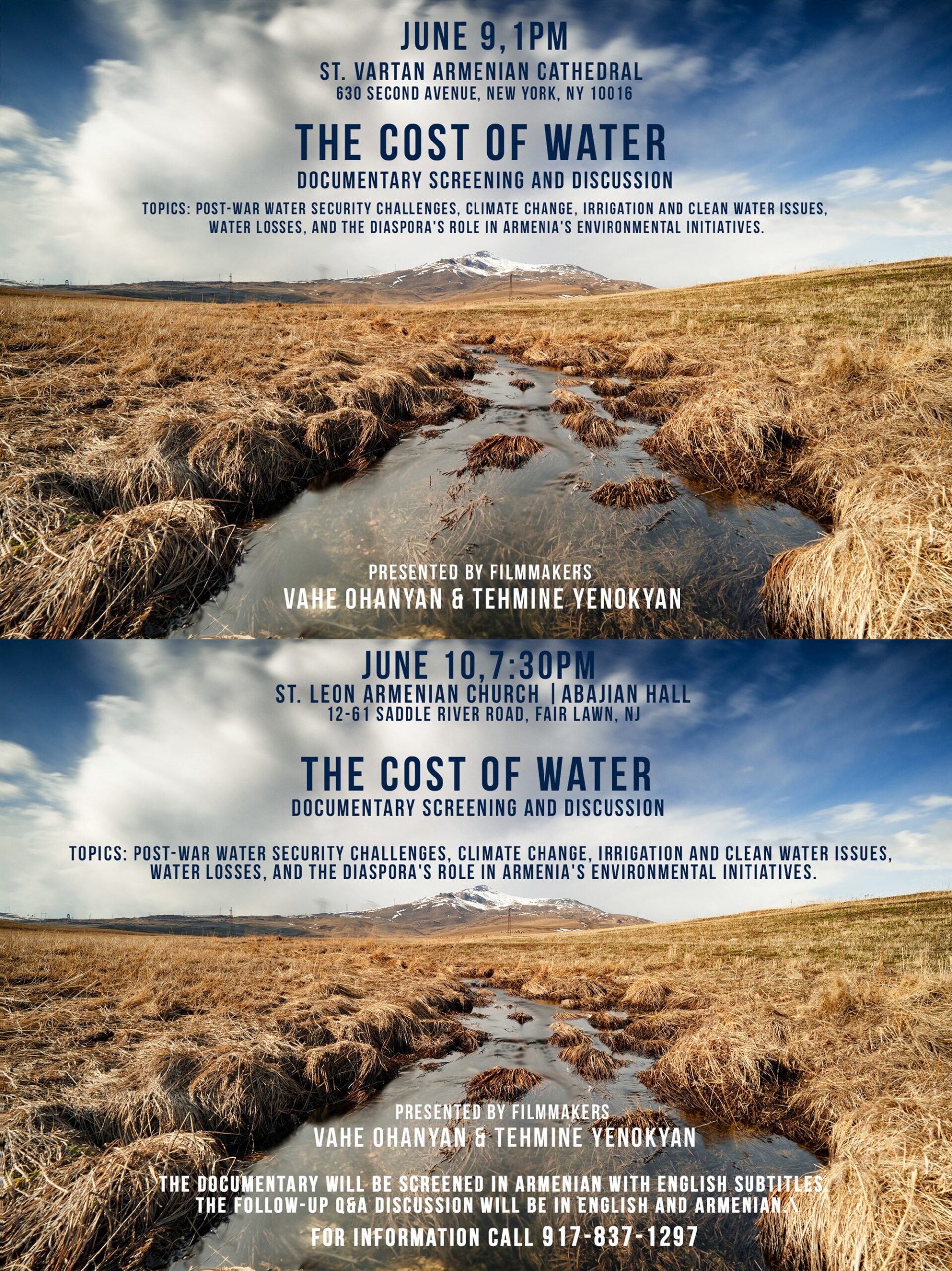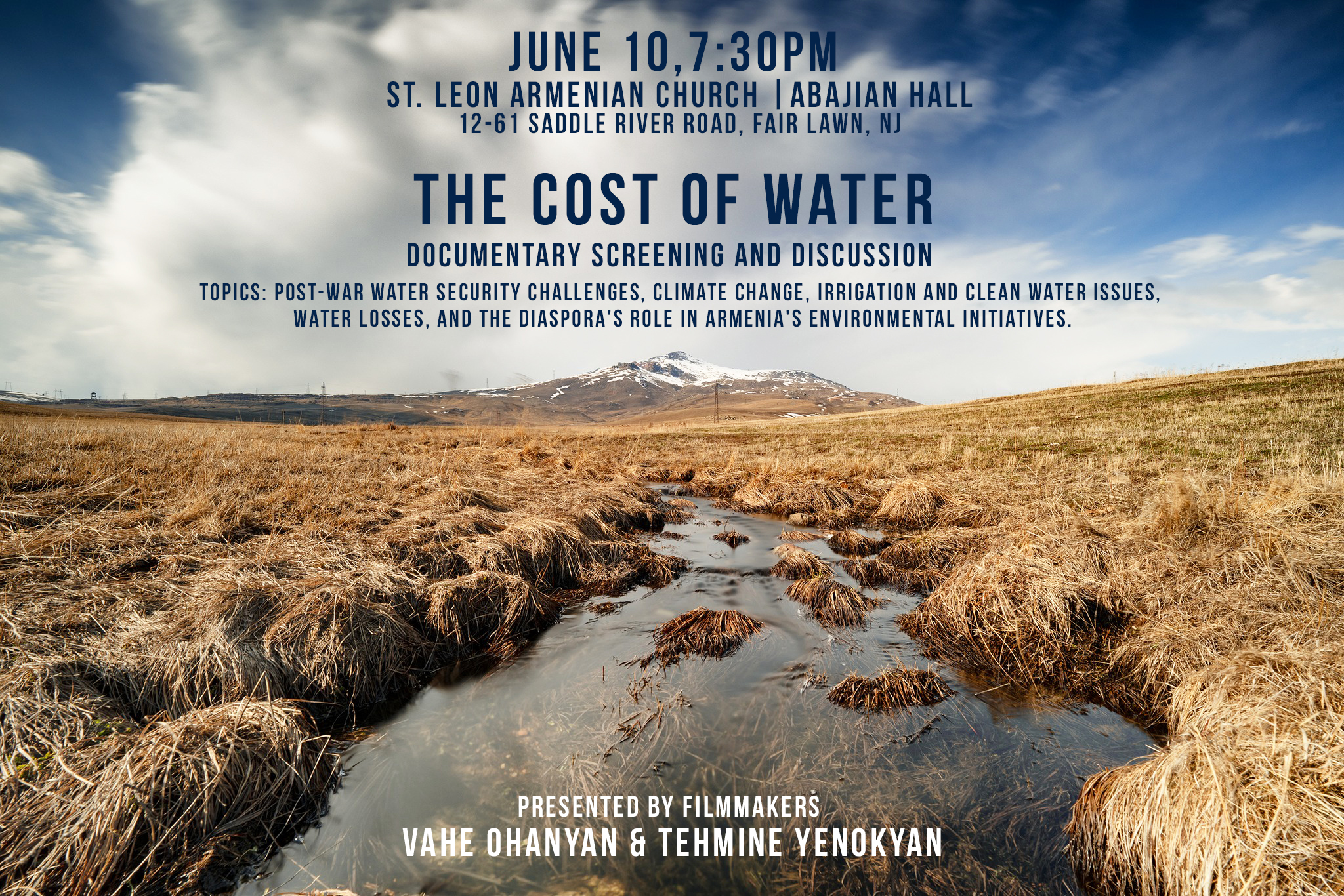 St. Leon Church in Fair Lawn, NJ, will present a screening of the documentary film The Cost of Water, on Monday, Jun. 10, at 7:30 p.m., in the church’s Abajian Hall (12-61 Saddle River Rd., Fair Lawn). A discussion follows with filmmakers Vahe Ohanyan and Tehmine Yenokyan. To view a flyer with information, click here. Click the following link to view the trailer.