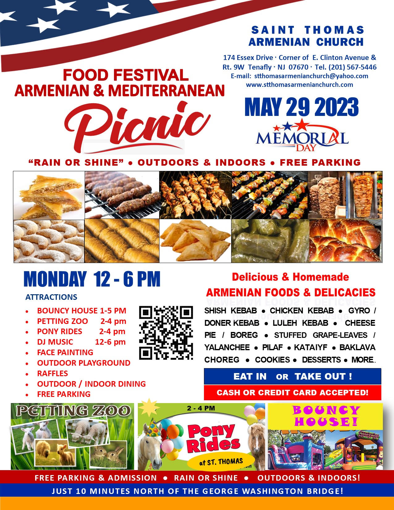 St. Thomas Church of Tenafly, NJ, will host its annual Memorial Day picnic and food festival on Monday, May 29, on the church grounds (174 Essex Dr., Tenafly), from 12 to 6 p.m. (rain or shine). Enjoy homemade food and dessert, music, a tavloo tournament, raffle, and activities for kids. Click here to view a flyer. For information, log onto the church website.
